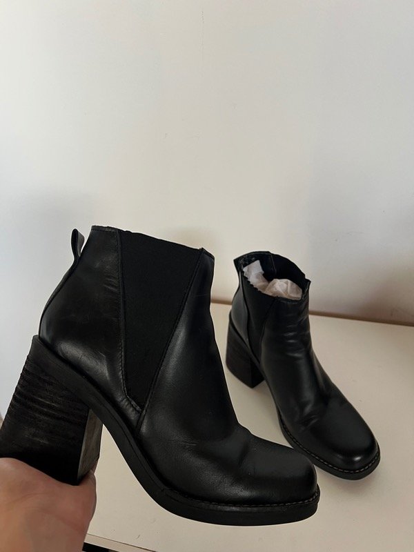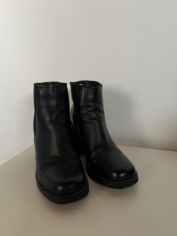 talle 38 ( 24,5cm de plantilla) por fuera impecables. Por dentro tiene descascarado del roce de poner y sacar. Al tenerlos puestos, no se nota.